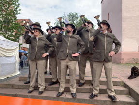 Umstädter Bauernmarkt Traditionell eröffnet der Umstädter Bürgermeister und unser Bläsercorps den Umstädter Bauernmarkt - das letzte mal 2019 vor Corona.Dieses Jahr 2022 haben wir wieder sehr gerne der Einladung zugesagt und werden die Eröffnung mit jagdlichen Klängen begleiten.Nach der Eröffnung besteht die Möglichkeit, in ungezwungender Atmosphäre mit den Bläsern ins Gespräch zu gehen und auch einmal selbst in ein - natürlich desinfiziertes - Jagdhorn zu blasen.